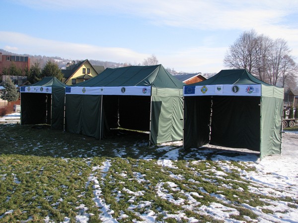 Zakupiono również komplet namiotów przeznaczonych do ochrony kuchni polowej oraz do ochrony miejsca do degustacji potraw.